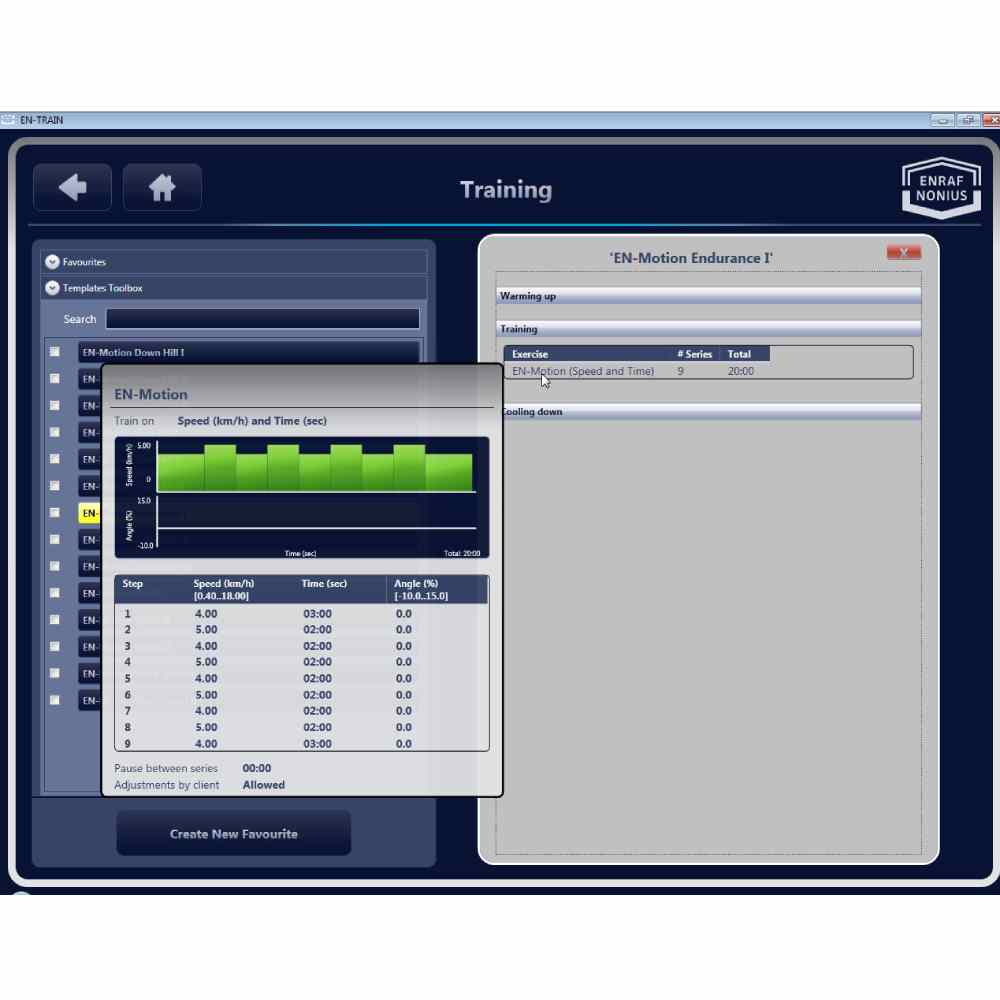 Overall, the software program offers a user-friendly and practical solution for testing and training. Its adaptability and compatibility with Enraf-Nonius exercise machines make it a versatile tool for anyone seeking to improve their fitness or provide training to others.