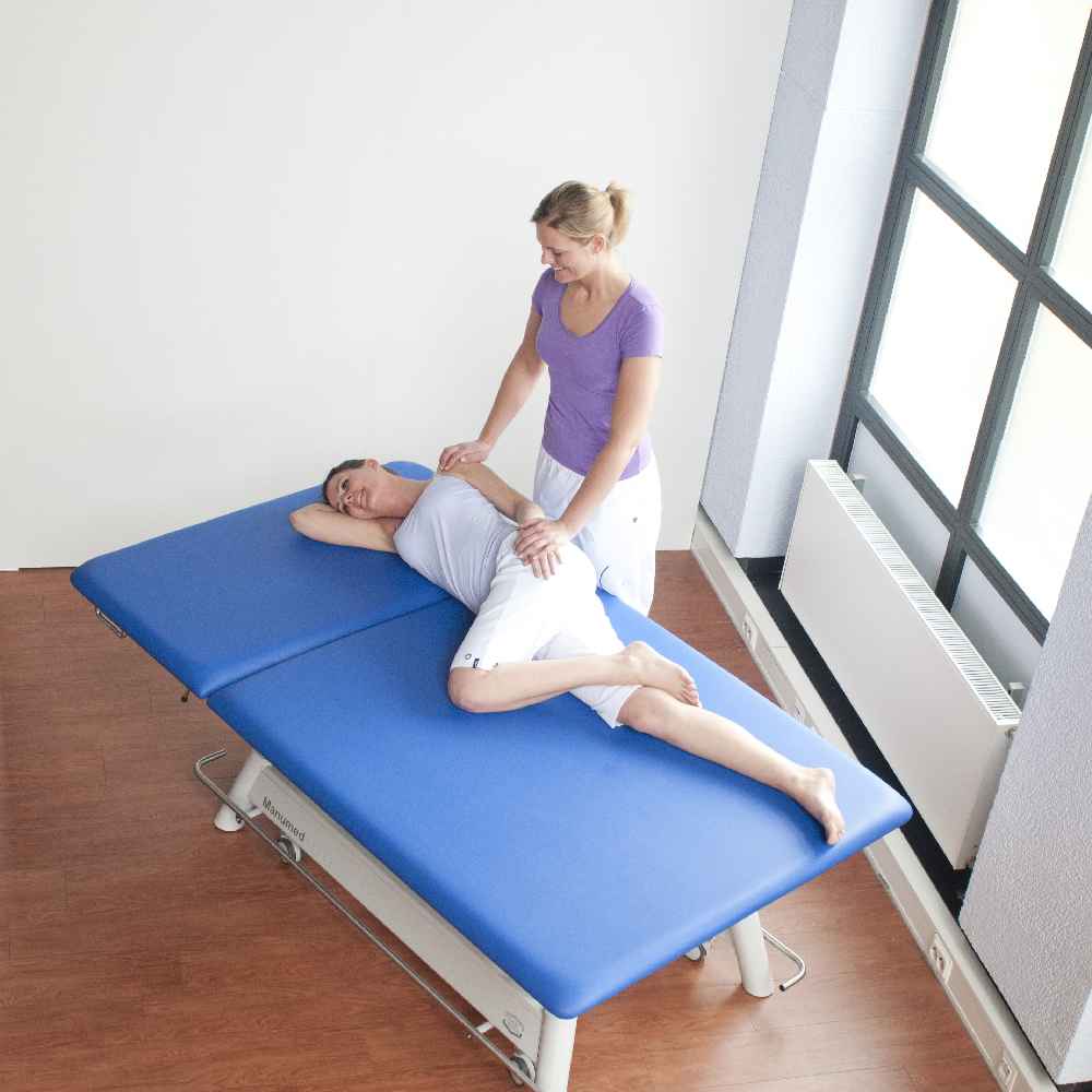 The Manumed Bobath is a treatment couch that is designed for neurological exercise therapy. It features a large and extra-wide treatment surface of either 100 cm or 120 cm by 200 cm, which makes it easy for practitioners to support and assist patients during therapeutic exercises. The couch is designed to provide unmatched stability and allows the Bobath and Vojta motion methods to be applied to perfection. The couch is also sturdy and comfortable, providing both the patient and practitioner with the most comfortable treatment positions.