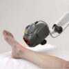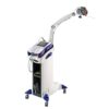 Safety features include a laser emission warning light, interlock, acoustic signal, and password protection. The device can be powered by a lithium polymer battery or an external power supply. It has a compact size of 63 x 54 x 85 cm and weighs 25 kg.