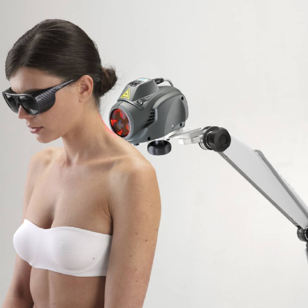 The Mphi 5 is a versatile medical device that offers simultaneous dual treatment for various body parts. It consists of a handpiece and a multidiodic applicator called Charlie. The handpiece features an MLS® source with a peak power of 25 W and a target area of 3 cm2, while Charlie has three MLS® sources with a combined peak power of 3 x 25 W and a larger target area of 20 cm2.