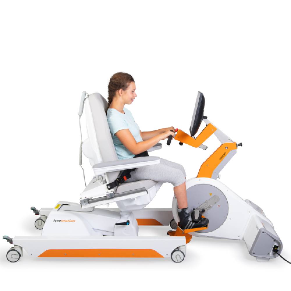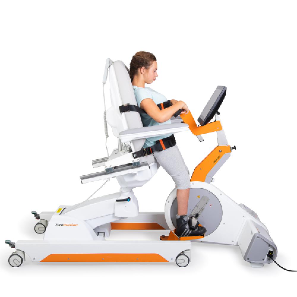 OMEGO® Plus is a robotic-assisted device that aids lower limb function movement therapy in patients with neurological, orthopedic, geriatric, and pediatric conditions. With its two separate drives, the device provides mobilization in an effortless, isolated, and focused manner, making it a missing link to gait therapy. The TyroS software aids patients during training to improve motor, sensory, and cognitive deficits. OMEGO® Plus therapy supports various aspects of rehabilitation, such as cardiorespiratory, muscle strength, ROM & mobilization, proprioception, symmetry, rhythm, and cadence. It also facilitates verticalization, which is a significant milestone in rehabilitation. OMEGO® Plus is a cost-effective, motivational, and fun device that provides nearly limitless variability for lower limb function movement therapy. The device is highly adaptable to patient and therapeutic needs, and its gamification feature makes training more enjoyable. OMEGO® Plus supports patients from early rehabilitation all the way through to the possibility of verticalization. The device enables specific training of functional therapy goals, such as mobilization, passive & active ROM, muscle strength, and standing balance, among others. Patients can use the device to perform activities while lying down, sitting or standing, such as leg press, stepper, cycling, rhythm training, ankle joint training, assessments, and gamification.
